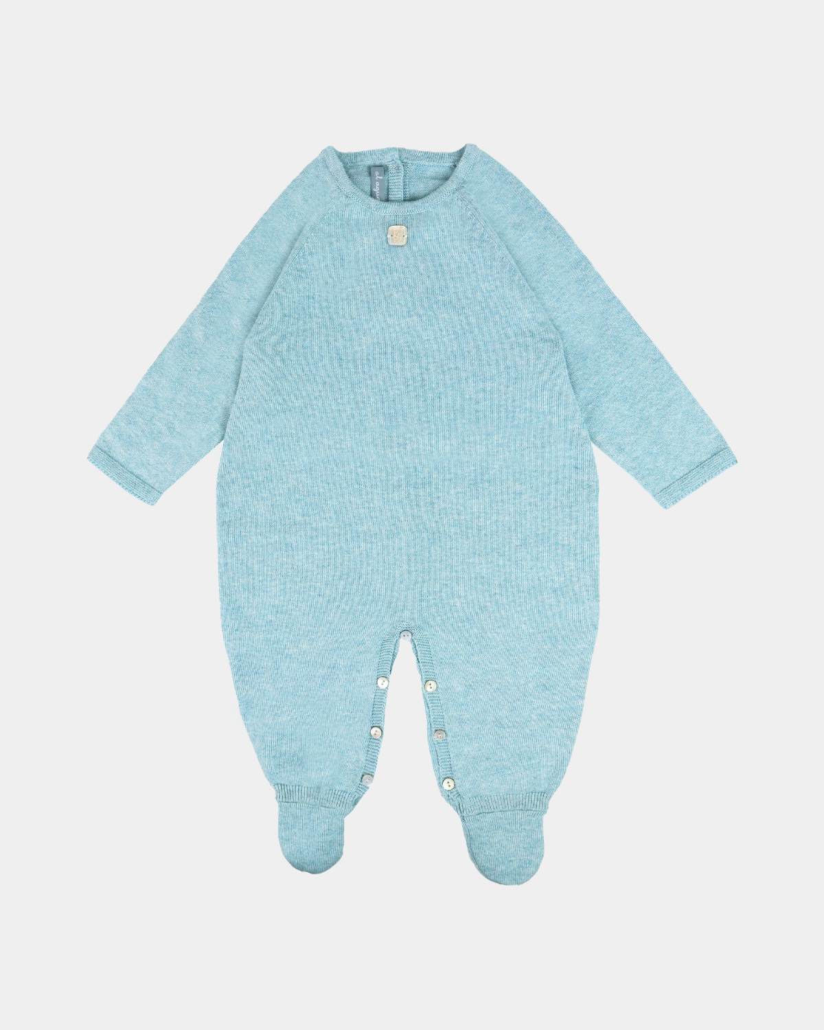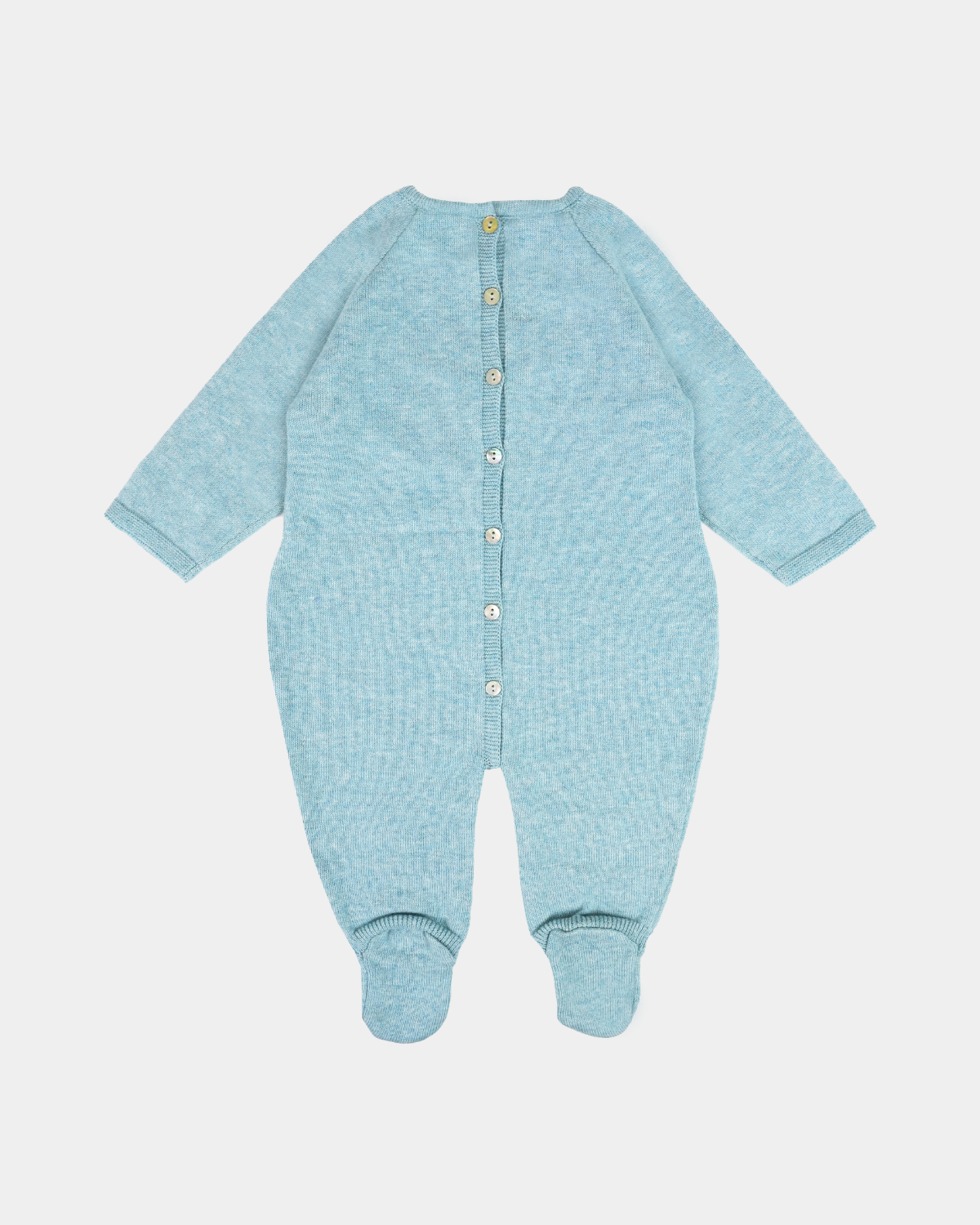 Pelele de manga larga para bebé de 1 a 12 meses. Cierre por la parte lateral y por los camales con botones de nácar, para facilitar la puesta de la prenda y el cambio de pañal. Prenda 100% de algodón.