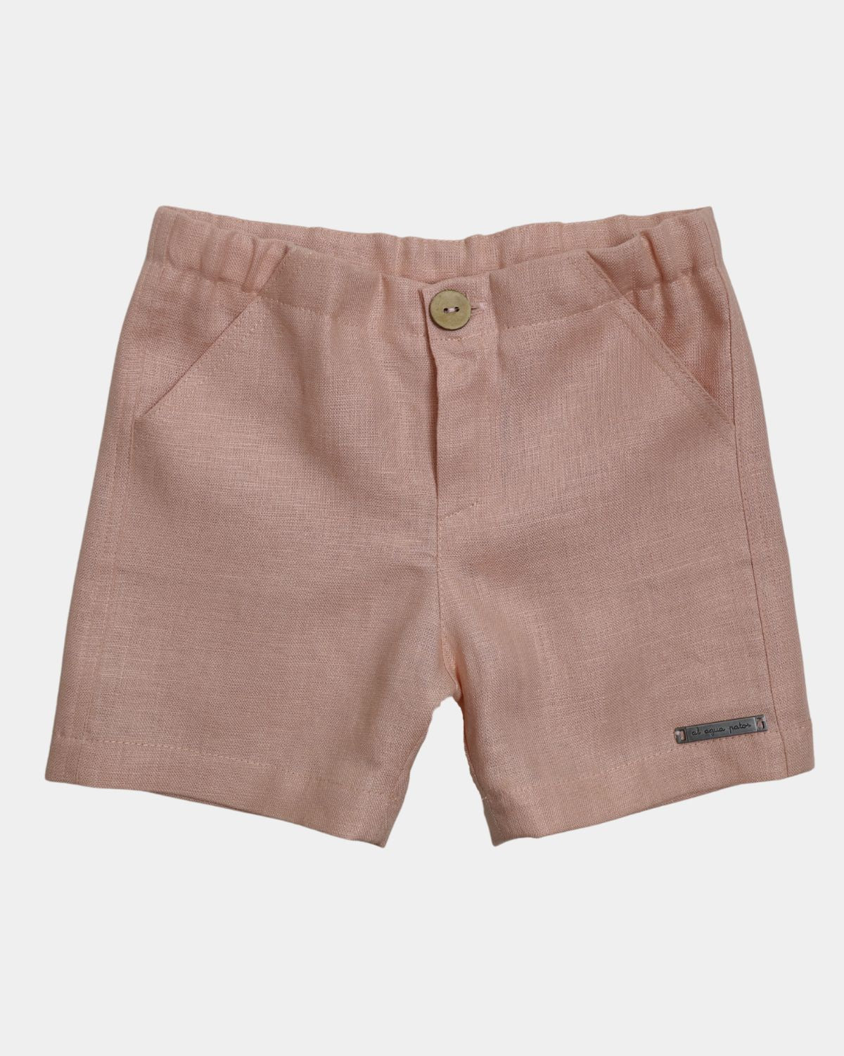 Bermuda azul larga por encima de la rodilla para bebés y niños de 1 mes a 8 años. Se brocha con una cremallera y un botón de madera y en el trasero lleva un bolsillo con vivo. Confeccionada en tejido 100% algodón.