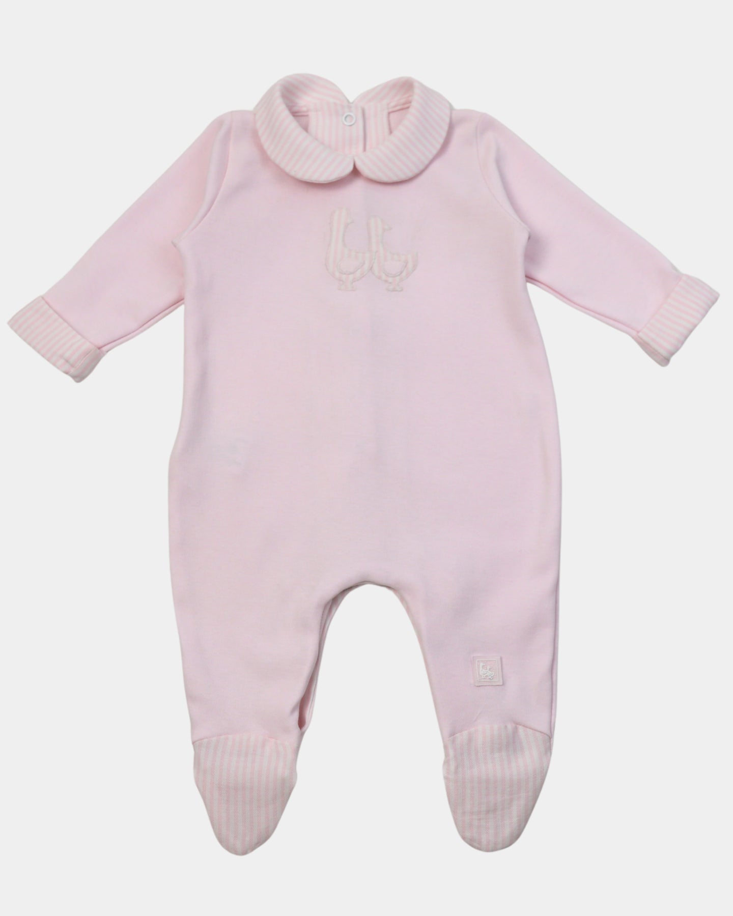 Pijama en punto de algodón 100% rosa, abierto en la espalda y también en la entrepierna.
