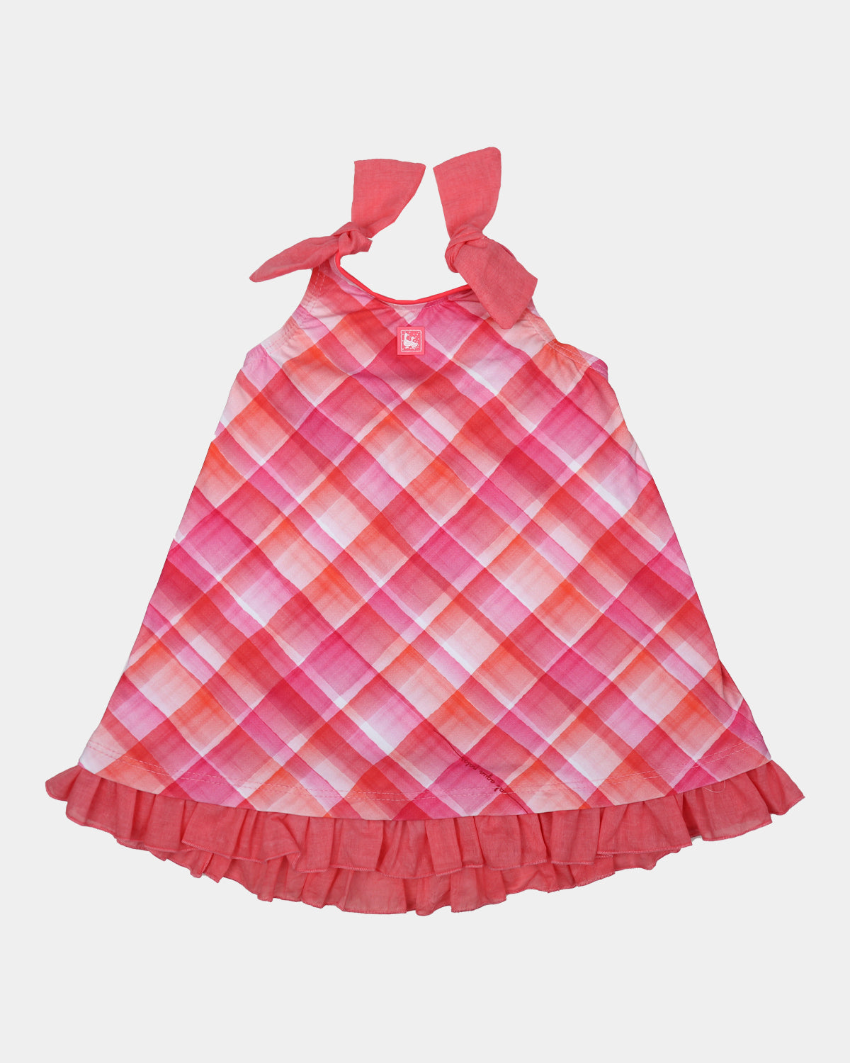 Este vestido está confeccionado en tejido de poliamida con un 18% de licra, esto puede parecer absurdo por que no sirve para bañarse, pero tiene la ventaja de que no se arruga, es cómodo, y al final del verano sus colores están como el primer día. En los hombros y en la parte posterior, los lacitos además de anudados van cosidos para evitar que se pierdan. En el pecho lleva bordado el anagrama de nuestra marca : una familia de patitos. Esta es una de nuestras prendas estrella, quien lo prueba repite!