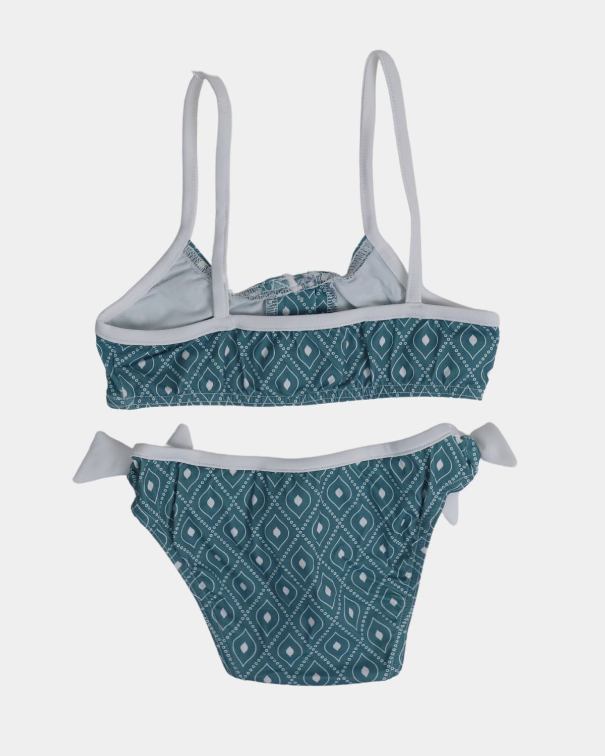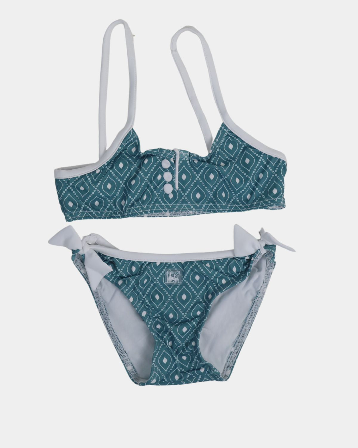Bikini ideal con el estampado Corbi. Los tirantes del top llevan un lazo de lycra, que le dan un movimiento muy especial al bikini. La braguita va rematada con dos volantitos en los laterales y en la parte trasera dándole movimiento a la prenda. Este está confeccionado en tejido de poliamida con un 18% de lycra que le aporta gran elasticidad.