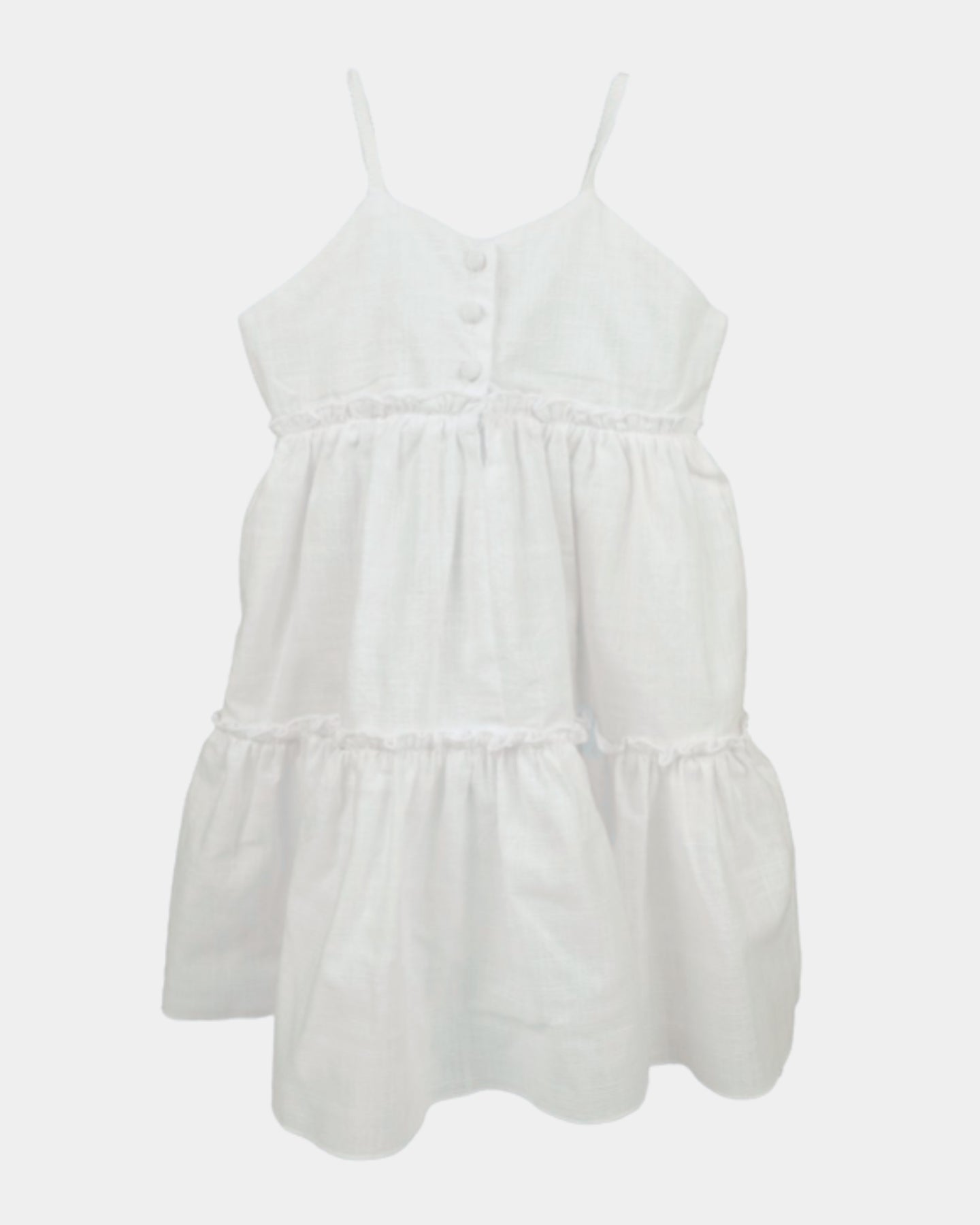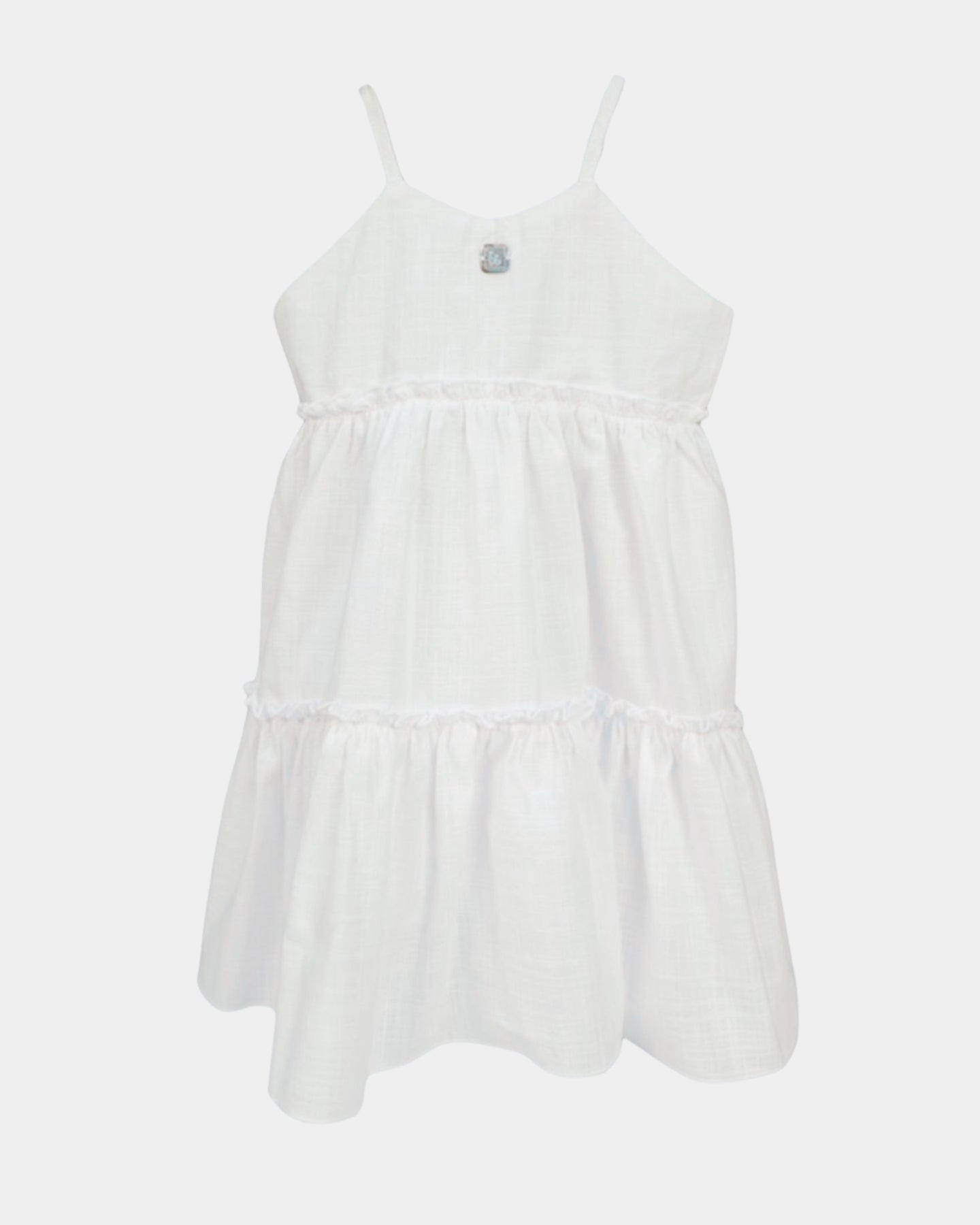 Super cool dress for summer. The skirt of this dress is made up of two slightly ruffled ruffles with great flight. The straps can be adjusted with a bow, allowing the garment to be adjusted to each type, and extending the period of use of the garment. It fastens at the back with two buttons.