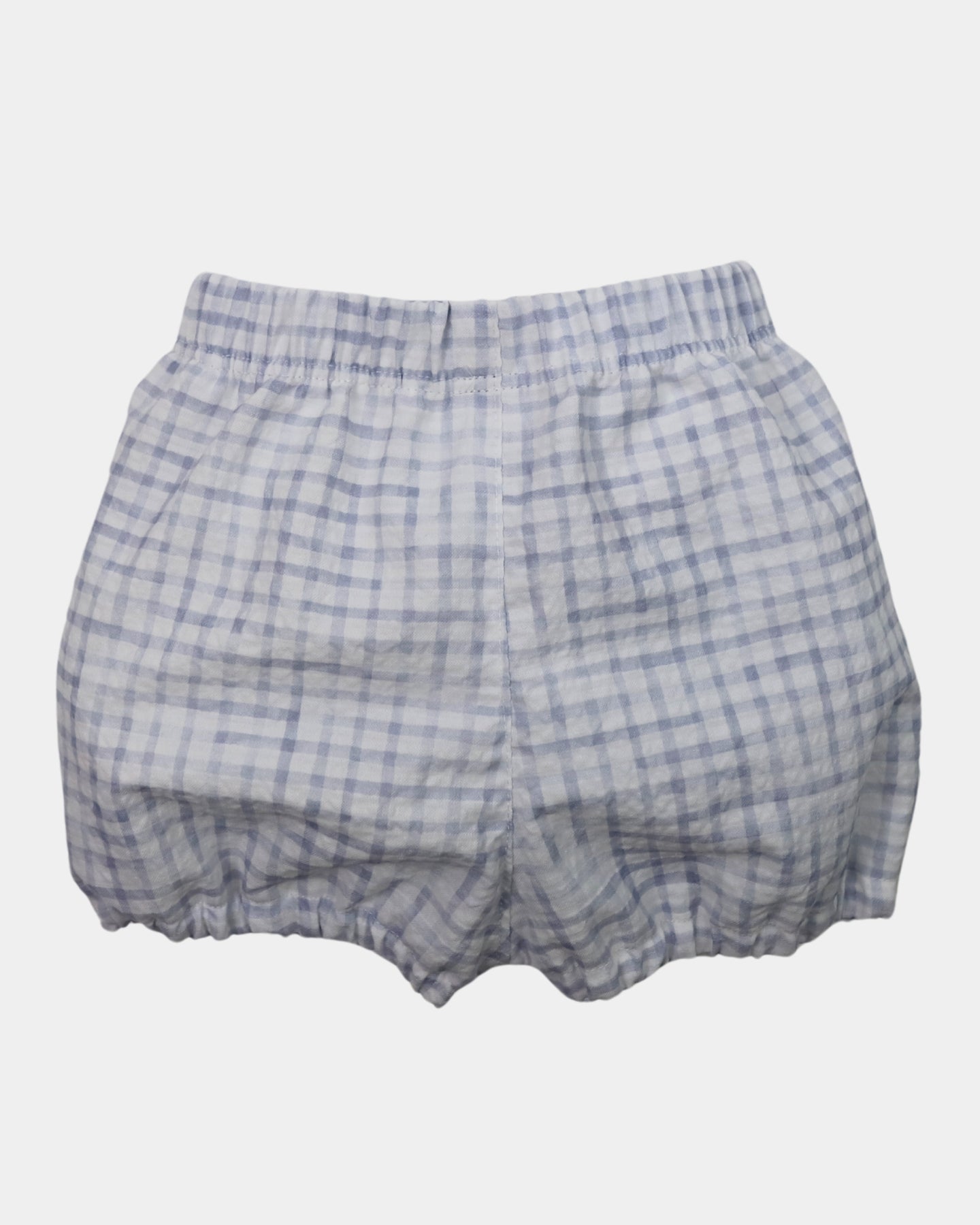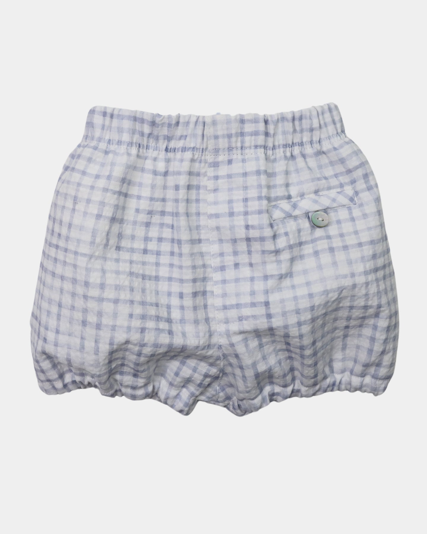 Cubre pañal de lino con estampado Capri en tonos azules. La cintura y los camales van muy fruncidos con una suave goma elástica. En la parte delantera tiene un botón y un bolsillo decorativo. Disponible desde recién nacido hasta 24 meses.
