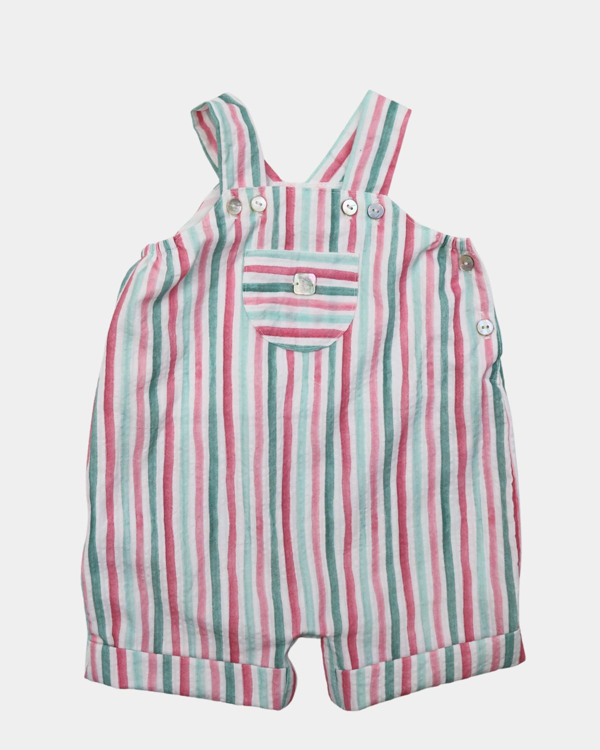 Este pelele de la serie Faro, es ideal para bebes debido a su apertura en la entrepierna, con automáticos. Los botones de los tirantes son fijos. En la pechera lleva bordado nuestro anagrama formado por una familia de patos.